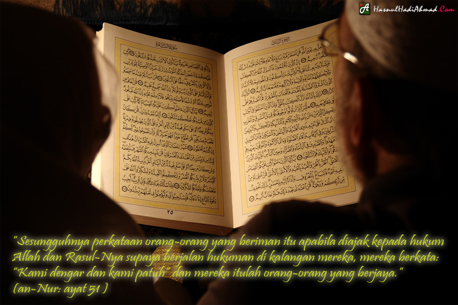 “Sesungguhnya perkataan orang-orang yang beriman itu apabila diajak kepada hukum Allah dan Rasul-Nya supaya berjalan hukuman di kalangan mereka, mereka berkata: “Kami dengar dan kami patuh” dan mereka itulah orang-orang yang berjaya.” (an-Nur: ayat 51 )