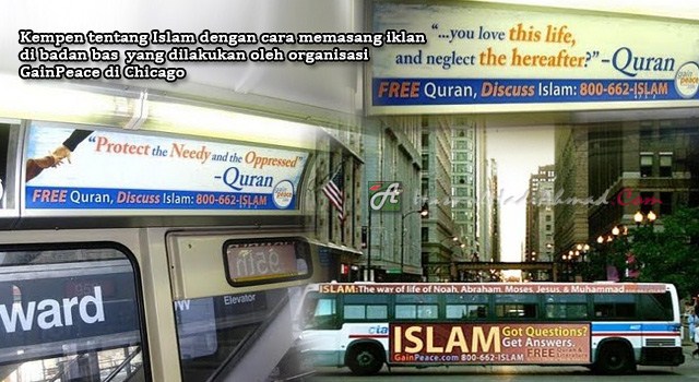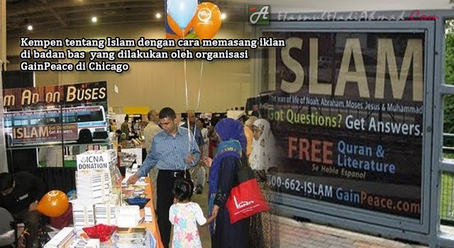 Kempen tentang Islam dengan cara memasang iklan di badan bas yang dilakukan oleh organisasi GainPeace di Chicago. Kegiatan yang dilakukan organisasi ini ternyata membuahkan hasil, bukan hanya mampu membetulkan pandangan masyarakat Barat yang salah tentang Islam tetapi setelah melihat iklan di badan bas tersebut, seramai 17 warga Chicago yang menyatakan diri untuk masuk Islam.