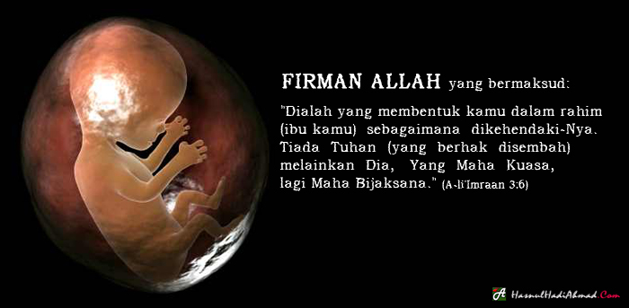 “Dialah yang membentuk kamu dalam rahim (ibu kamu) sebagaimana dikehendaki-Nya. Tiada Tuhan (yang berhak disembah) melainkan Dia, Yang Maha Kuasa, lagi Maha Bijaksana.” (surah A-li’Imraan 3:6)