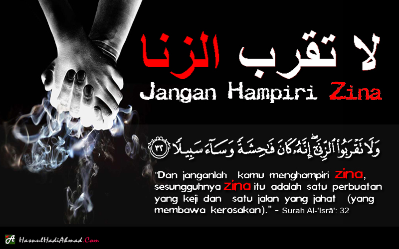 “Dan janganlah kamu menghampiri zina, sesungguhnya zina itu adalah satu perbuatan yang keji dan satu jalan yang jahat (yang membawa kerosakan).” – Surat Al-‘Isrā’: 32
